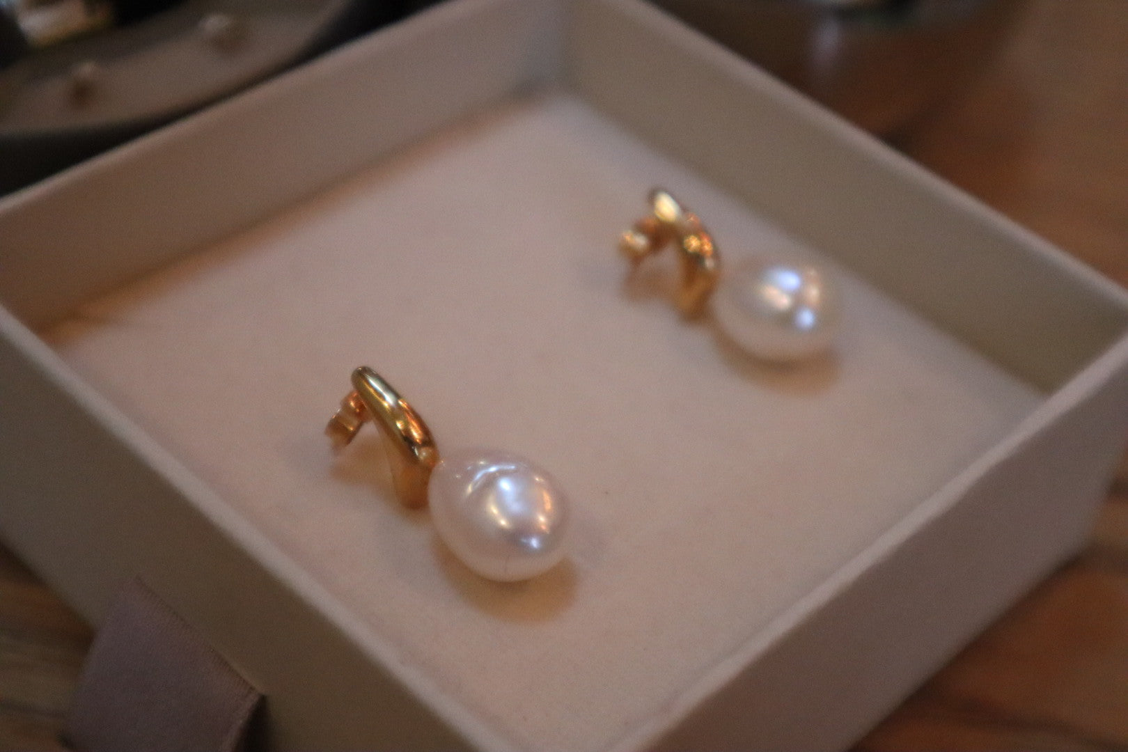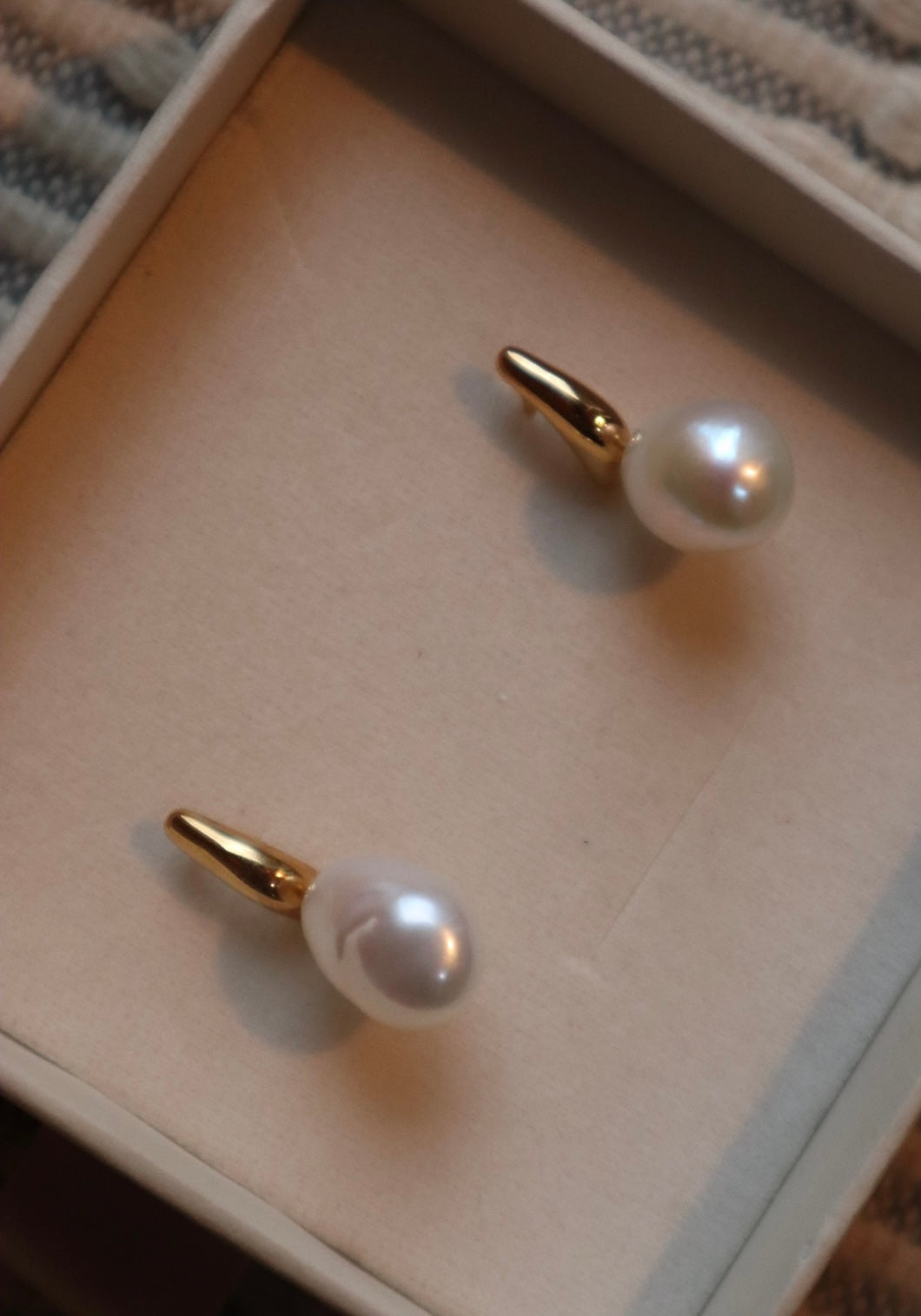 Sterling silver studs with 2.5 layer of gold-plating and natural pearls. To preserve the earrings and the pearls in good condition, keep in a dry place and avoid water as it can damage the pearls.