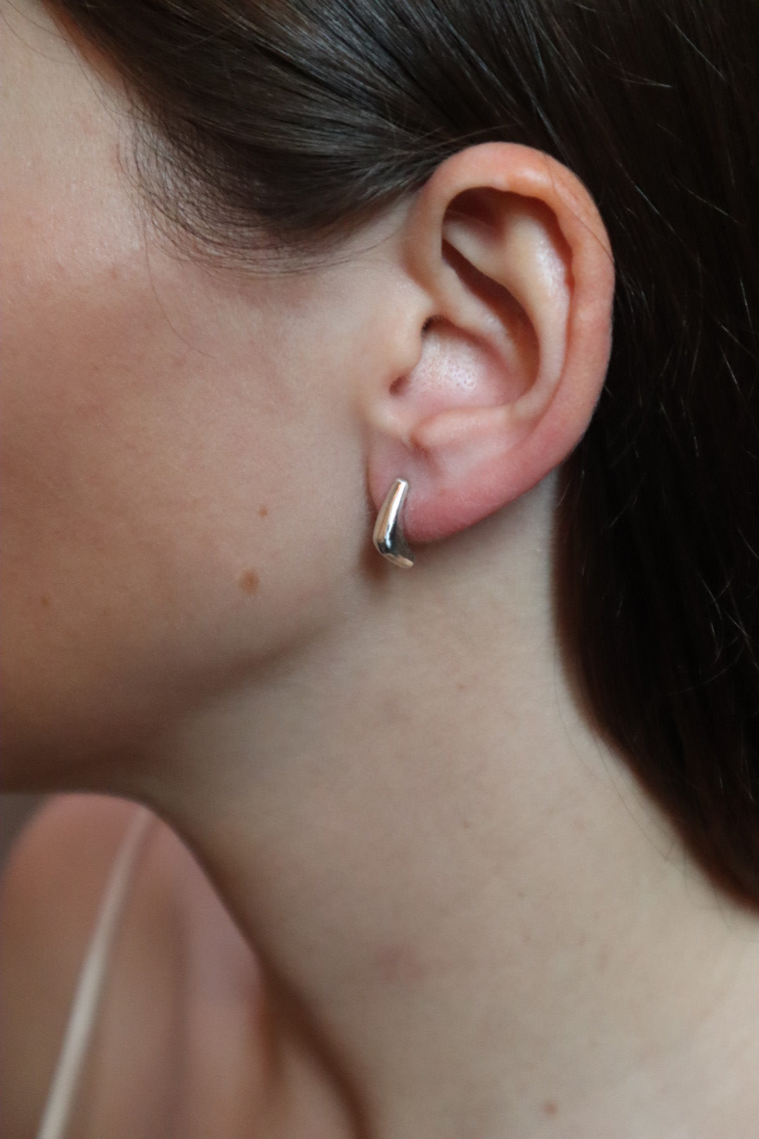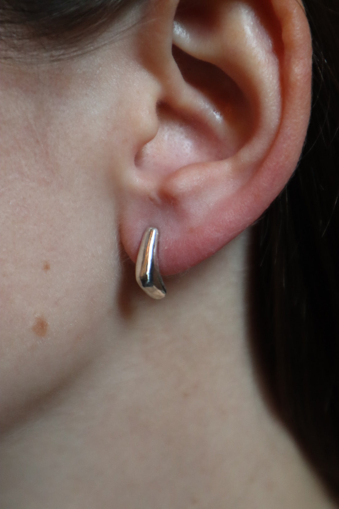 These small half-moon huggies sit close to the lobe for a clean, sculptural profile. They come with classic pin & scroll closure (no hinged clasp) for a discreet, secure fit that keeps the silhouette slim and elegant.